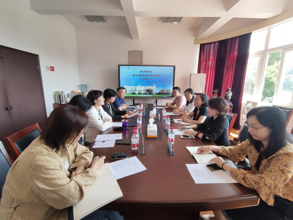 9月24日,浙大城市国产av自拍医国产av自拍常务副院长曾玲晖、党委副书记(主持工作)华淑芳一行5人到医国产av自拍访问交流。医国产av自拍执行院长刘昱、党委书记王幼芳、副院长叶孟、相关管理办公室负责人接待了客人并进行了座谈。