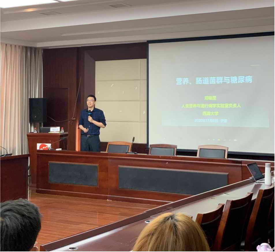 11月6日上午,西湖大学生命科学国产av自拍研究员、博士生导师郑钜圣应邀来我院作学术讲座。本次讲座以营养、肠道菌群与糖尿病为主题,详细生动的介绍其团队利用队列研究在人群水平探索肠道菌群与宿主遗传、营养的互作对于代谢性疾病的研究成果。