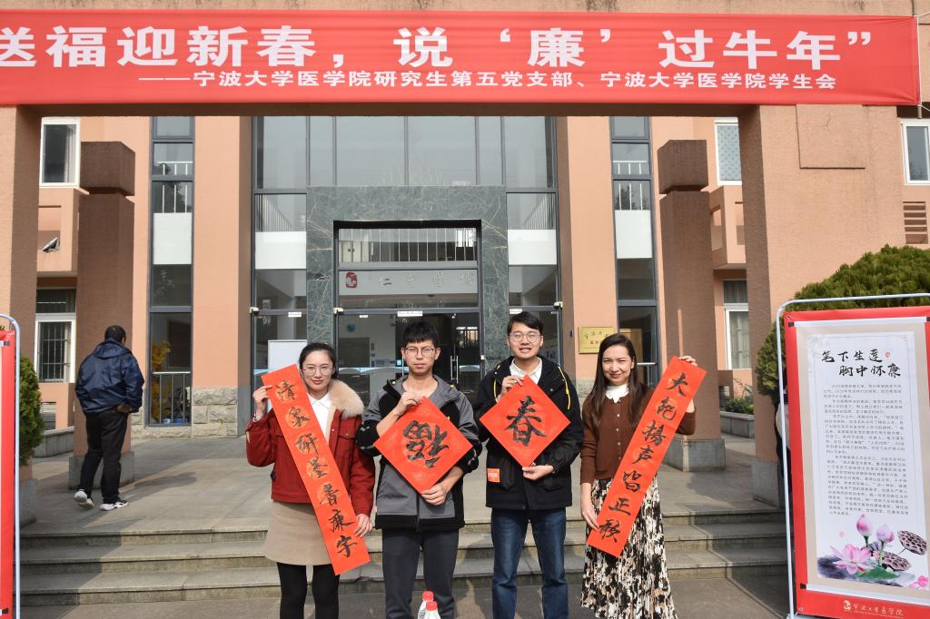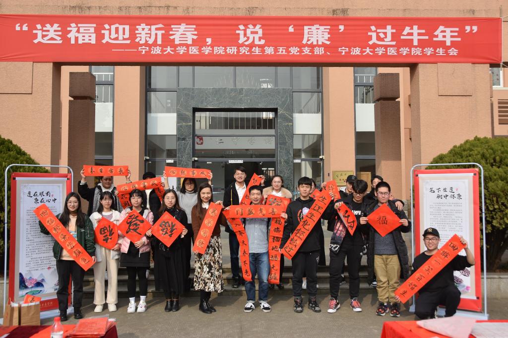 12月28日中午,医国产av自拍在至真小广场举行了“送福迎新春,说‘廉’过牛年”活动,作为国产av自拍党委组织的2020年“反腐倡廉宣传周”系列活动之一,以“说廉书春联,笑脸迎新年”为主要内容,由医国产av自拍研究生第五党支部(校研究生样板党支部)、国产av自拍学生会联合组织,全院100余位师生参加了此次活动。