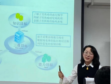 郝志敏现场演示《子宫肌瘤》的说课,就“学情分析、教学目标、教学重、难点、教法、学法、教学过程等”结合自身经验进行详细生动地讲述。刘腾现场演示《妊娠期高血压疾病》的整个教学设计过程,就“教学目标与内容、学情分析与教材分析、教学策略与方法选择等”结合切身体会进行认真细致地讲述。