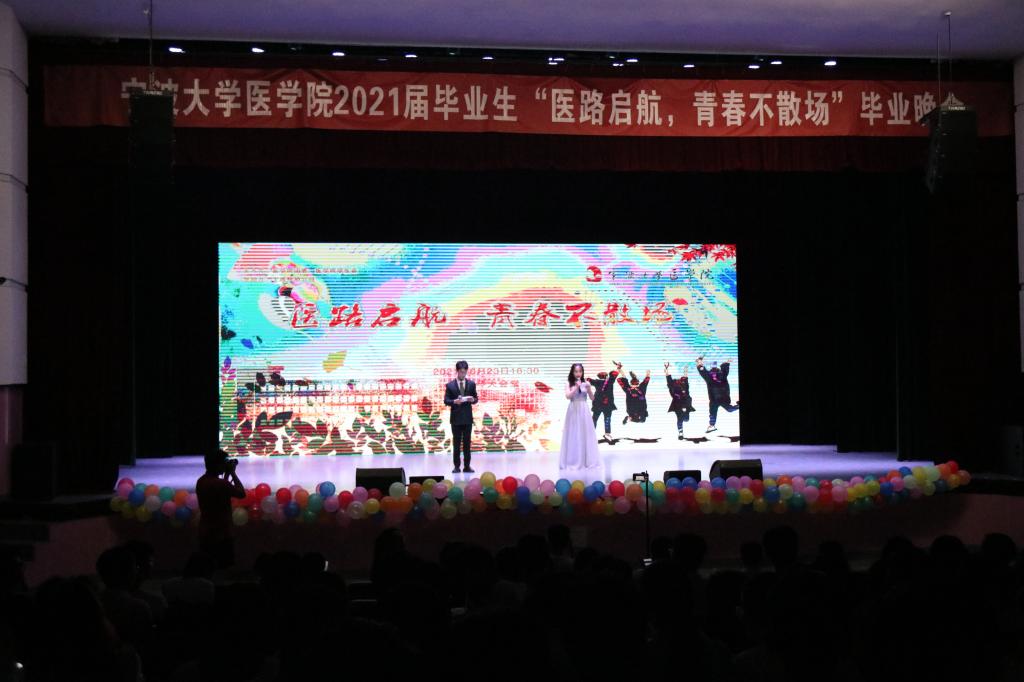6月23日晚,医国产av自拍团委、学生会联合举办的 “医路启航,青春不散场”2021届毕业生晚会在林杏琴大会堂圆满结束。国产av自拍党委副书记周星宇、副院长叶孟、工会主席王萍、全体辅导员及2021届毕业生等参加了晚会。