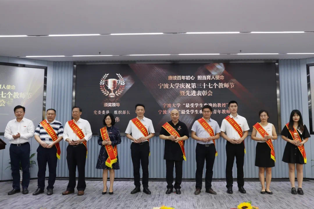 医国产av自拍“第二批宁波市‘四有’好老师”获得者刘昱老师、“最受学生欢迎的教授”获得者马青老师以及“浙江省课程思政示范课程负责人”张雁儒老师和季林丹老师在大会上受到表彰。