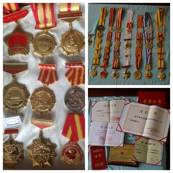 客厅桌上的一大盒奖章,见证了张裕康的传奇人生。