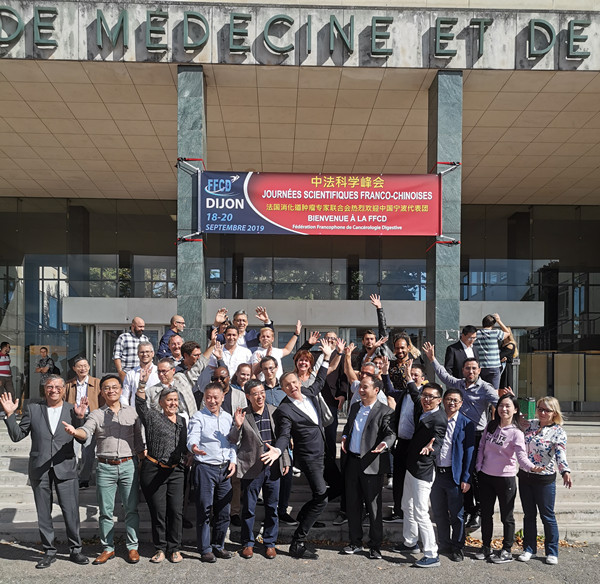 9月16-20日,第二届中法消化道肿瘤高级论坛在法国巴黎和第绒举办。国产av自拍 医国产av自拍临床医学一级学科博士点负责人周文华研究员,国产av自拍 医国产av自拍副院长叶孟教授,国产av自拍 附属李惠利医院普外科首席专家陆才德教授,国产av自拍 消化疾病研究所副所长郭俊明教授,国产av自拍 附属医院消化内科副主任张新军主任医师等一行9人在论坛上作报告。访问团先后参观了巴黎大学医国产av自拍,巴黎欧洲总医院,勃艮第大学医国产av自拍,最后参加法国消化道肿瘤协会(FFCD)2019年会。双方就后续ctDNA、CTC和ctDNA展开合作研究,FFCD帮助附属医院建立国际标准的临床药物研究,并与勃艮第大学医国产av自拍研究生培养和交换方案达成共识。