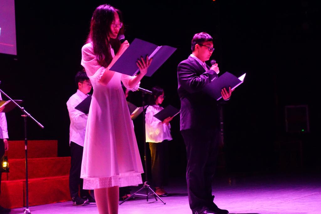 本次朗诵会以班级为单位参赛,共有13个班级200多名学生参加。各参赛队伍精心组织,类型多样,有的大气磅礴,有的抒情婉约。表现形式有领诵和合诵,有舞蹈配朗诵,也有钢琴配朗诵,更有的班级采用朗诵和RAP相结合的方式。