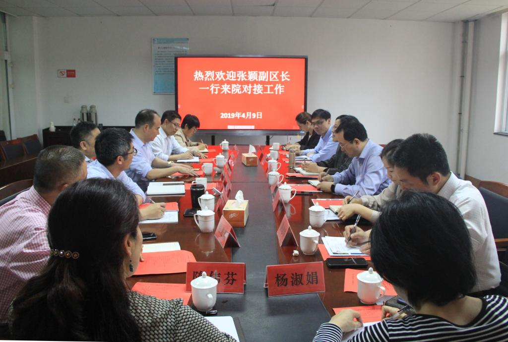 4月9日,宁波市江北区副区长张颖率江北区卫健局局长孙俊伟、区府办副主任马利民、市第九医院常务副院长陈志华等一行6人来医国产av自拍对接工作。医国产av自拍部分领导班子成员,相关学科系、管理办公室负责人接待了客人并进行了座谈。