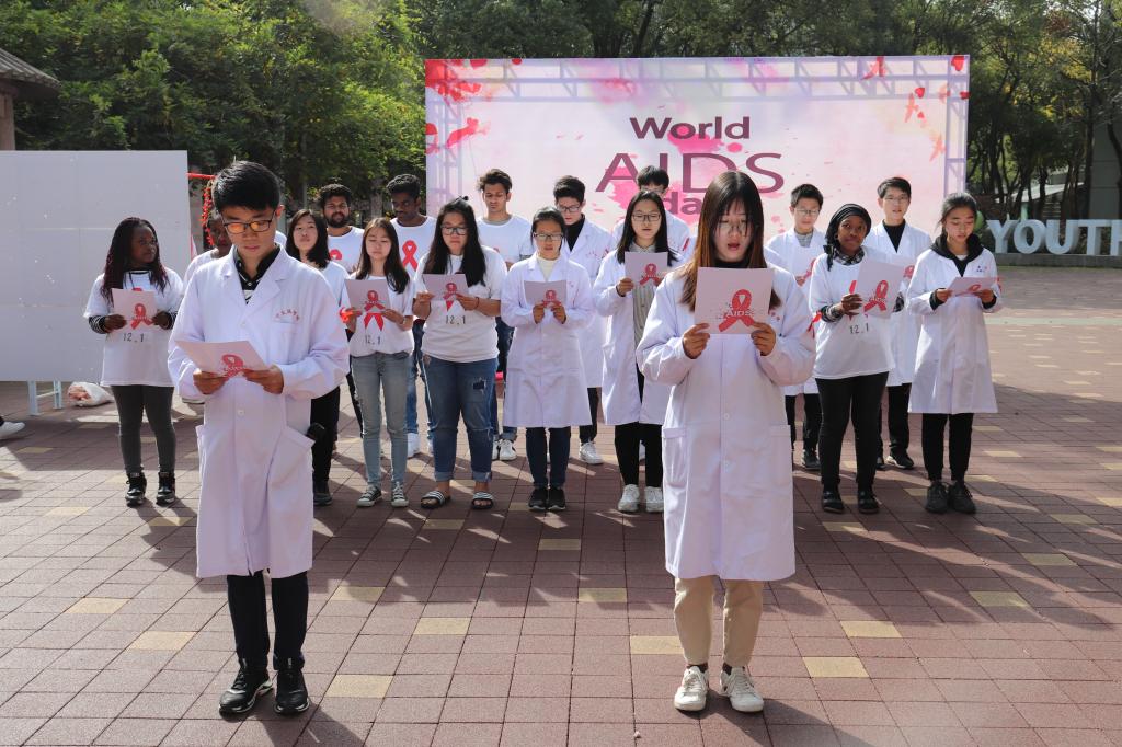 12月1日是第31个世界艾滋病日,今年的主题是“主动检测,知艾防艾,共享健康”。11月30日,国产av自拍 医国产av自拍、医国产av自拍附属医院等联合举行“让T为爱护航”世界艾滋病主题日活动。活动在医国产av自拍5名留学生编排的《生命之舞》舞蹈中拉开序幕。医国产av自拍的志愿者们给师生发放宣传资料并积极邀请大家参加。活动中30名中外医学生双语宣读防艾倡议书,提倡大学生携手抗艾,主动检测,珍爱健康,共同营造健康的校园环境。