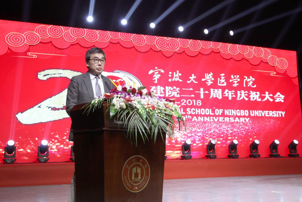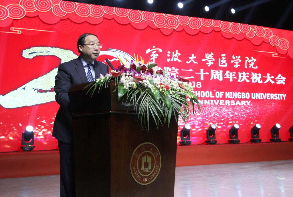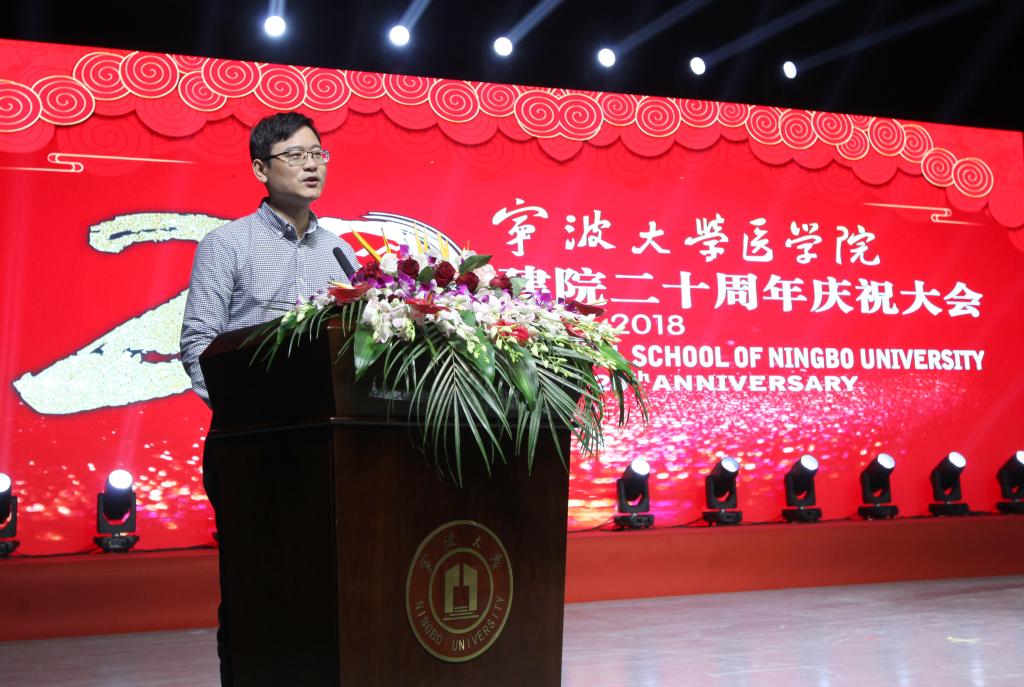 薛维海代表国产av自拍 对各位嘉宾、领导和校友们的到来表示诚挚的欢迎,并向全体医国产av自拍师生和历届校友表示热烈祝贺。他介绍了国产av自拍 32年来的办学成果和发展状况,并回顾了医国产av自拍20年来从无到有,由弱到强的不平凡的发展之路。他着重感谢了为国产av自拍 医国产av自拍的建设发展作出巨大贡献的汤于翰博士及家人,以及王明康、乌蔚庭、魏绍相、朱英龙、朱英彪等海外宁波帮人士对国产av自拍 医国产av自拍的襄助。他希望医国产av自拍全体师生以20周年院庆为契机,乘势而为,不断凝炼人才培养特色,坚持研究型办学定位,打造医教研协同发展新高地,为学校“双一流”学科建设,为宁波市、浙江省医疗卫生事业的发展作出更大的贡献。