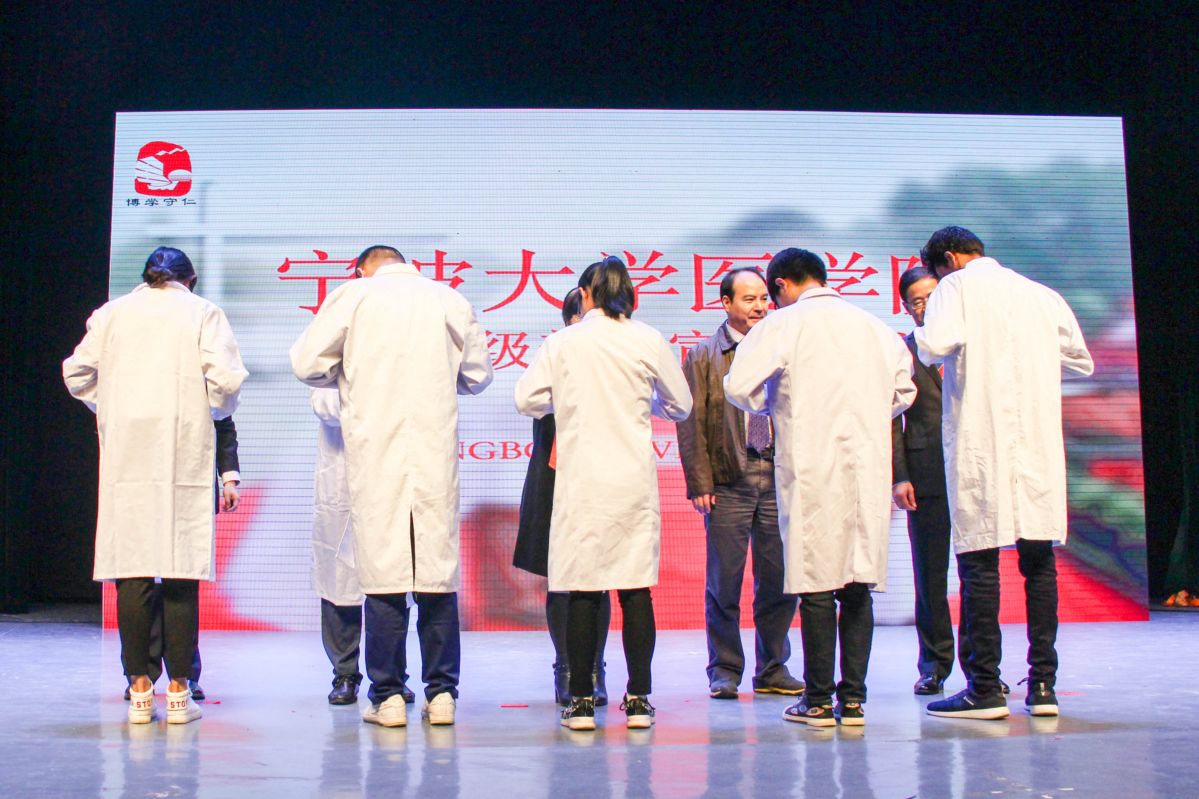 仪式上,医国产av自拍领导首先为新生代表授予象征着医学的圣洁和医者的使命的白大褂,中国学生和留学生新生代表分别发表了第一次穿上白大褂的感想。在医国产av自拍副院长杨路主任医师的带领下,全体新生立下“健康所系,性命相托”的医学生誓言。全场师生高唱《国产av自拍 医国产av自拍院歌》,“师生一德,博学守仁”,歌声响彻林杏琴会堂。