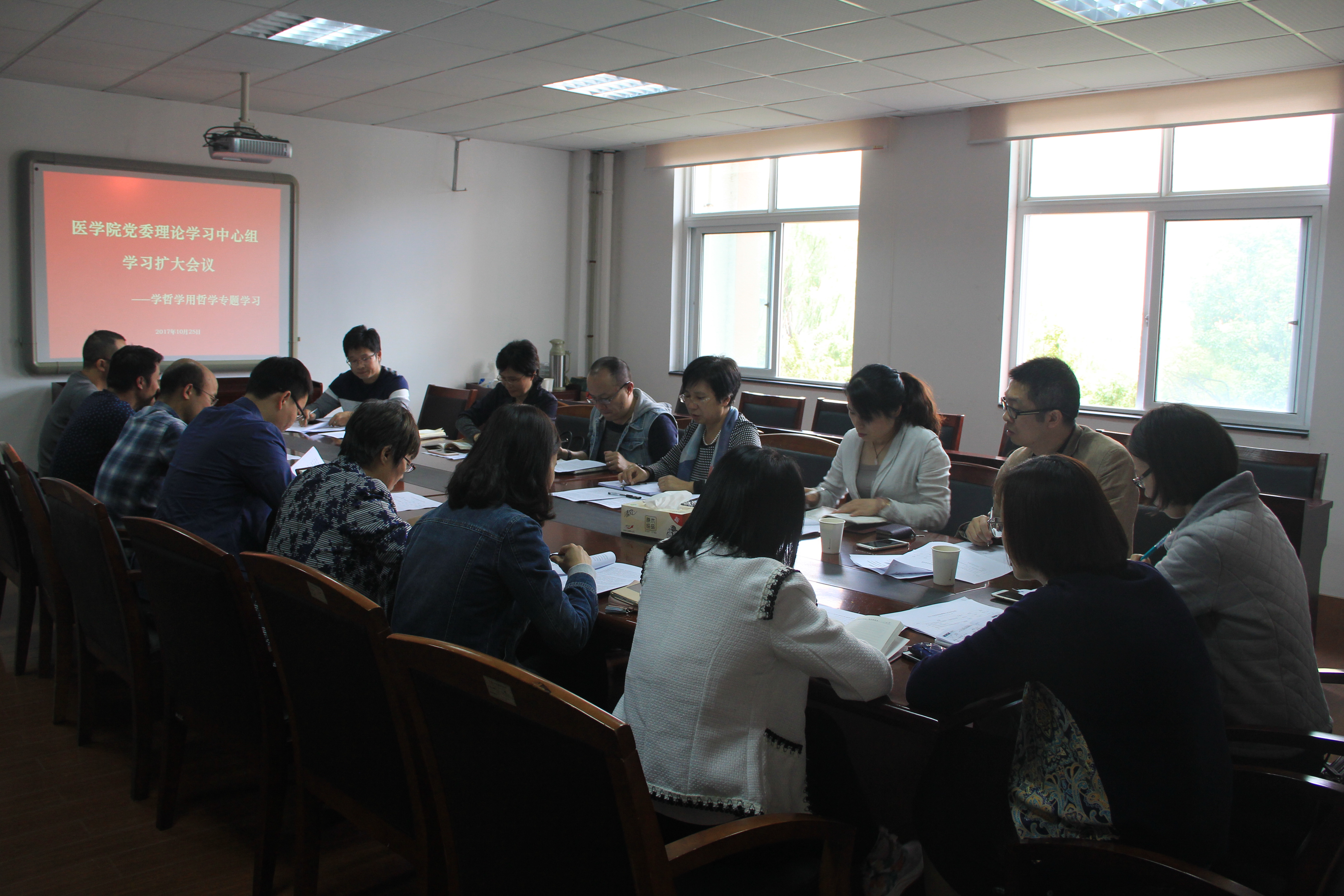 10月25日上午,医国产av自拍党委召开理论学习中心组扩大会议,开展学哲学用哲学专题学习研讨,会议由院党委书记王幼芳主持。院党委委员、教工党支部书记、支部委员等参加了会议。