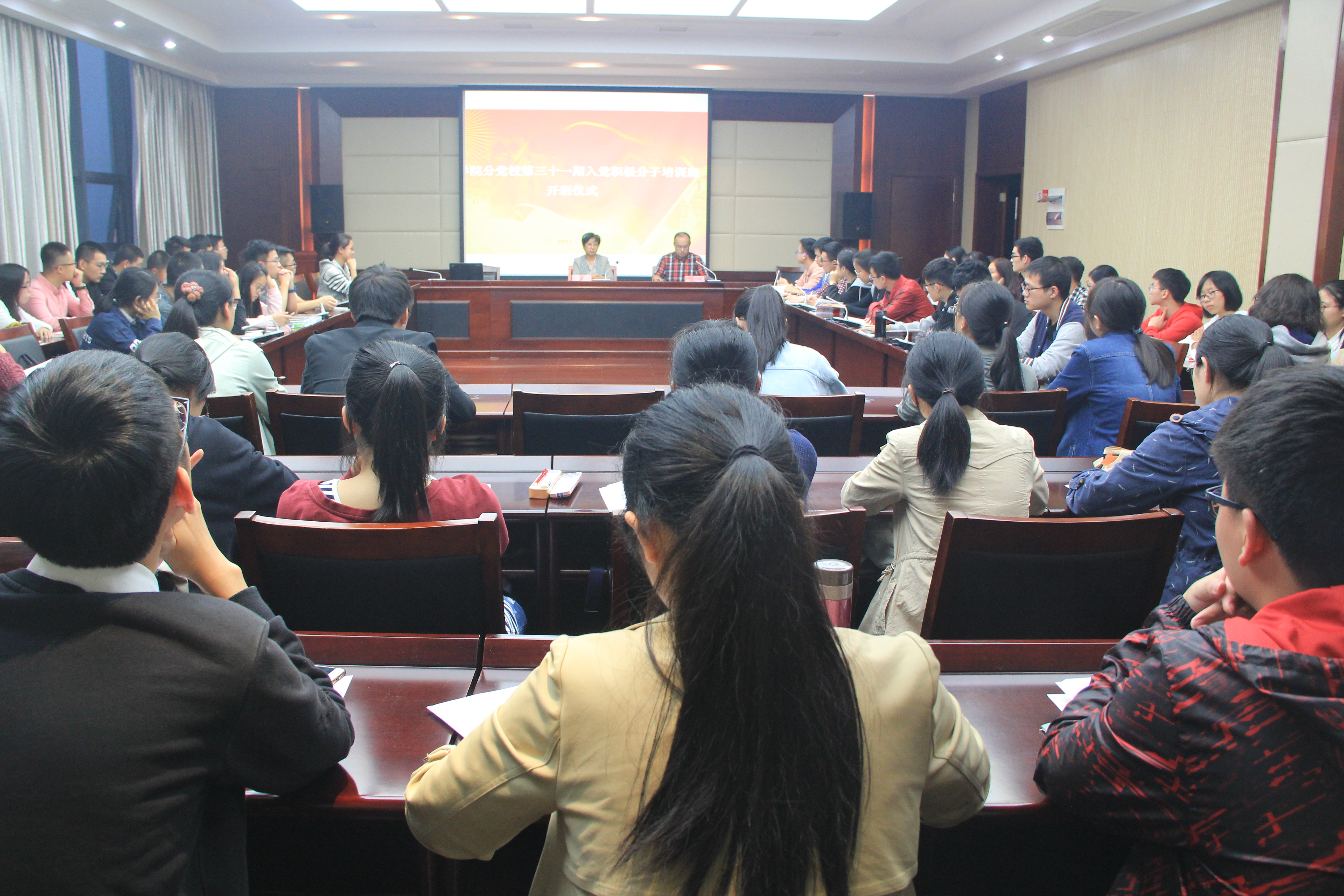 10月23日晚上,医国产av自拍分党校第三十一期入党积极分子培训班开班仪式在王长来楼二楼多功能厅举行。医国产av自拍党委书记王幼芳、副书记于瑾滔、学工办相关老师和全体党校学员参加仪式,会议由院党委副书记于瑾滔主持。