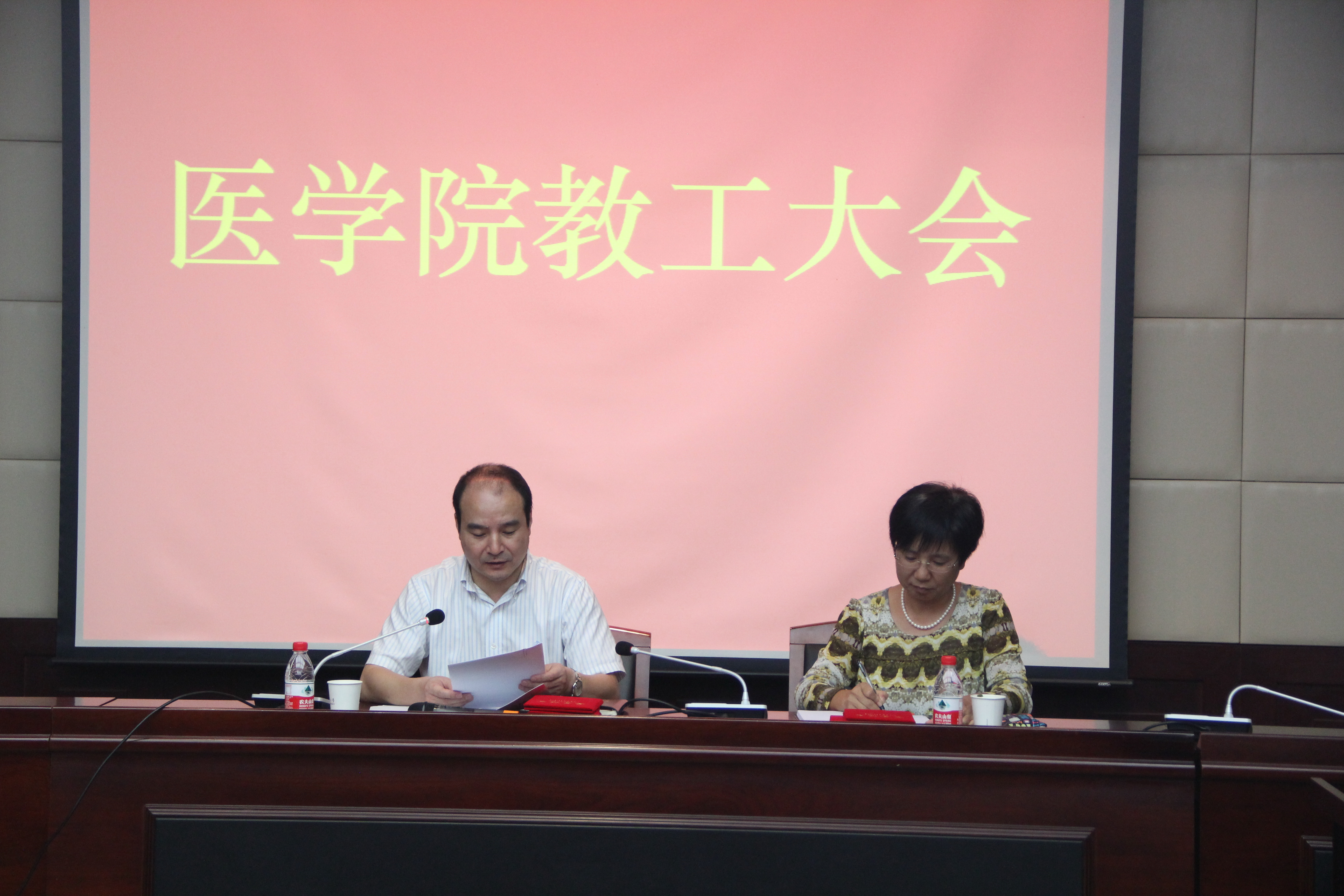 9月20日下午,医国产av自拍召开全院教工大会,会议由医国产av自拍执行院长周文华主持,新任医国产av自拍党委书记王幼芳参加了会议。