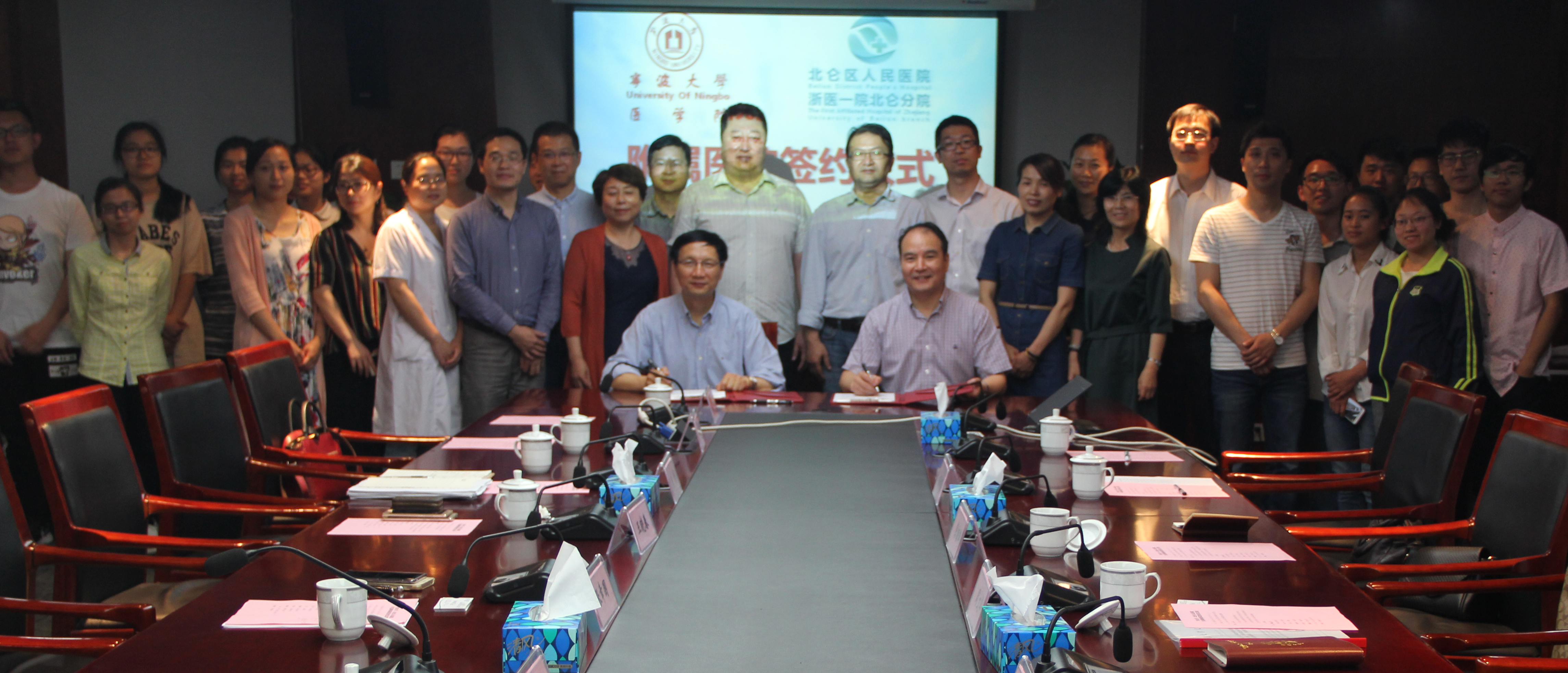5月23日下午,我校与北仑区人民医院建立附属医院关系签约仪式在北仑区人 民医院举行。医国产av自拍执行院长周文华、北仑区人民医院院长张幸国代表双方签字。医国产av自拍和北仑区人民医院相关负责人、师生代表参加了仪式。