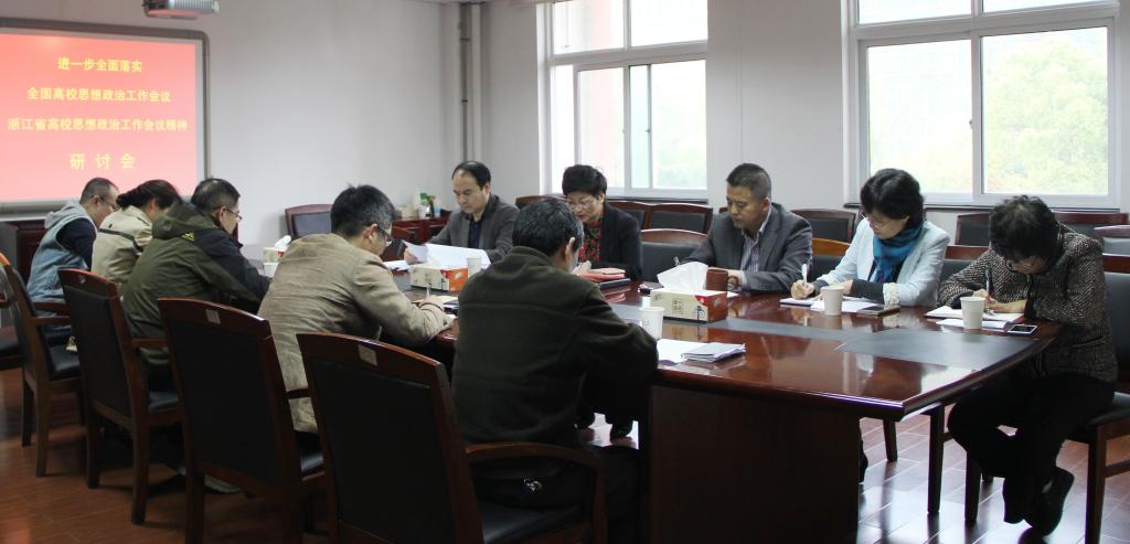 与会人员围绕习近平总书记在全国高校思想政治工作会议上的讲话和夏宝龙书记在浙江省高校思想政治工作会议上的讲话,结合自身工作实际就争做“四有”教师”、四个引路人、四个相统一、四个意识开展了认真研讨。大家认为老师就是要做到为人师表,应树立以学生为中心的教育理念,尽好本职,认认真真讲好课,同时加强思想引导,培养有自主学习能力、政治立场坚定的有用人才。