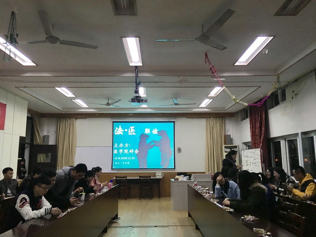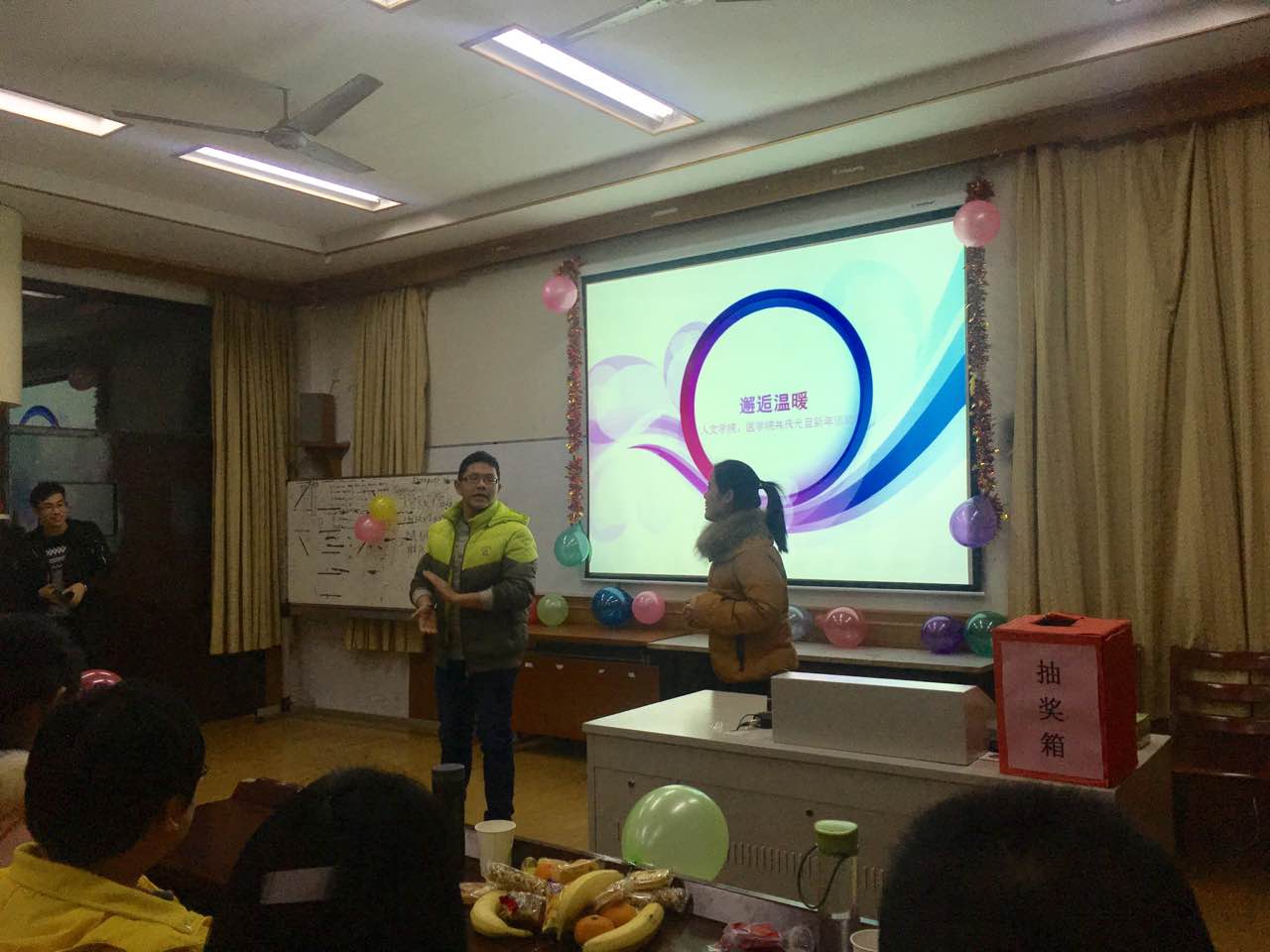 2016年12月28日晚,由医国产av自拍研会、人文国产av自拍研会联合主办的共庆元旦迎新年活动于医国产av自拍至真楼学生活动室举行,参加此次联谊活动的有人文院与医国产av自拍研一新生。本次活动旨在走出国产av自拍,加强与其他国产av自拍的交流沟通,广泛交友,丰富校园生活,庆祝元旦。