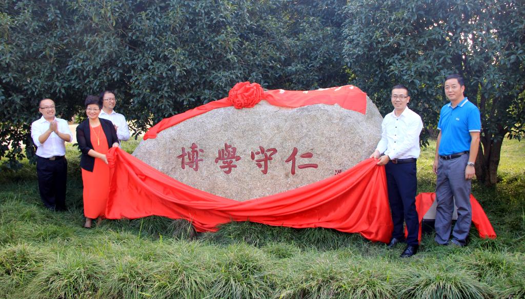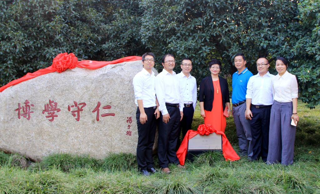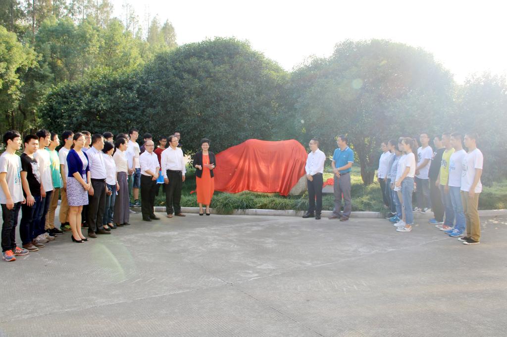 10月26日,医国产av自拍院训石碑揭碑仪式在至真小楼前举行,院训石碑赞助方代表宁波美康生物科技有限公司医疗事业部执行总经理曾奇先生和医国产av自拍党委书记骆巧凤出席并共同为院训石碑揭碑。宁波美康生物科技有限公司行政副总经理董宏先生;医国产av自拍副院长王钦文、党委副书记于瑾滔、院长助理龚朝辉、师生代表30余人参加了本次仪式。该仪式同时也是学校30周年校庆系列活动之一。