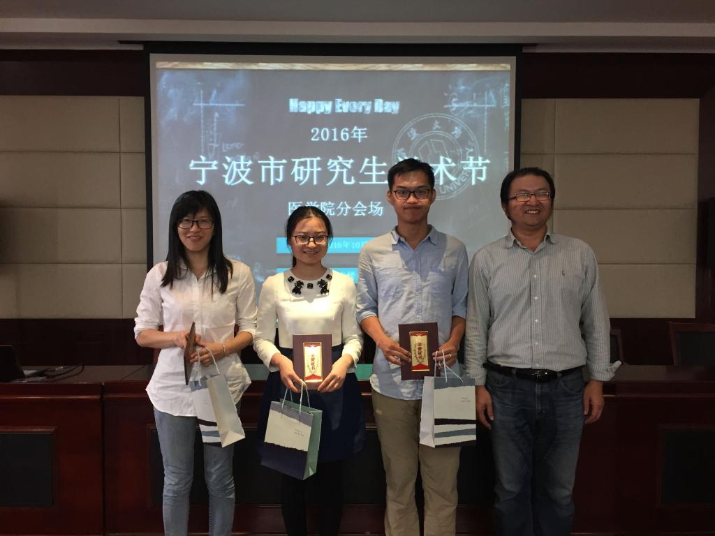 本次报告会的成绩由盲审成绩和现场成绩两部分组成,经过两个半小时的激烈角逐,罗敏同学、张壮威同学和谷元亮同学所报告的论文分别获得2016届宁波市研究生学术节医国产av自拍分会场的金、银、铜奖;同时罗敏同学的导师刘爱明副教授获得“最佳指导老师”称号;顾天伦同学因现场成绩得分最高获得“最佳报告奖”。此外,分会场还颁发了1个“最佳提问奖”和6个“幸运观众奖”。
