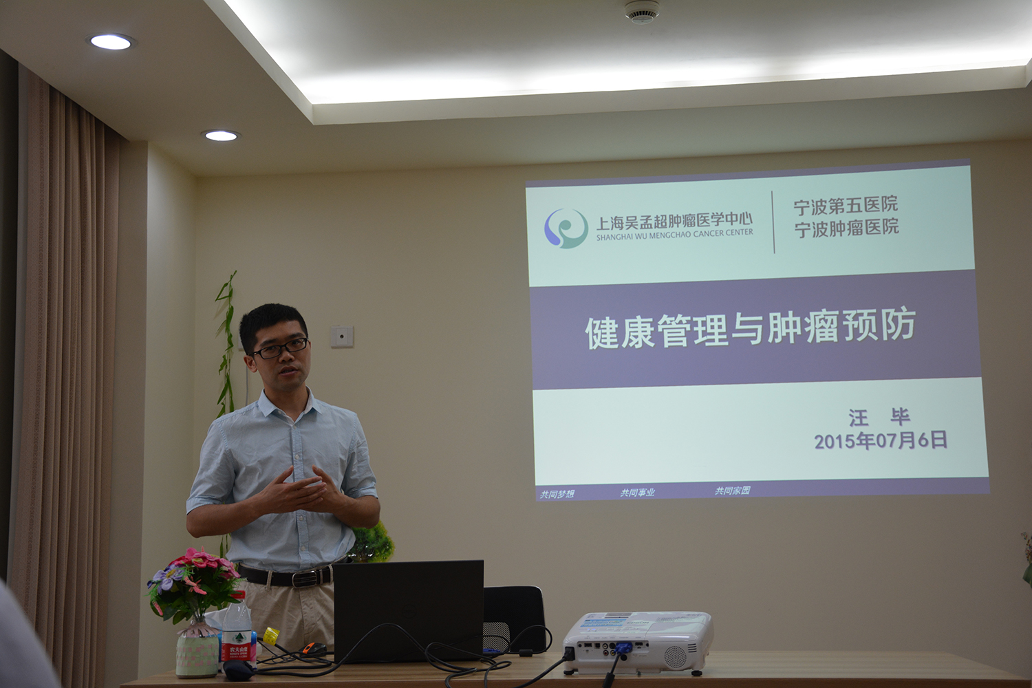 我院副书记于瑾滔首先进行了发言,对本次暑期社会实践活动给予了高度的期望,并要求同学们时刻铭记“博学守仁”的院训,并在今后的医学生涯中仁爱从医。宁波第五医院副院长葛方艺现身说法,引导在场同学行医德,树先锋。随后,医院拓展部各工作板块负责人分别为同学们上了绘声绘色的一课,最后,医院负责人根据同学们的个人兴趣,进行了分组。