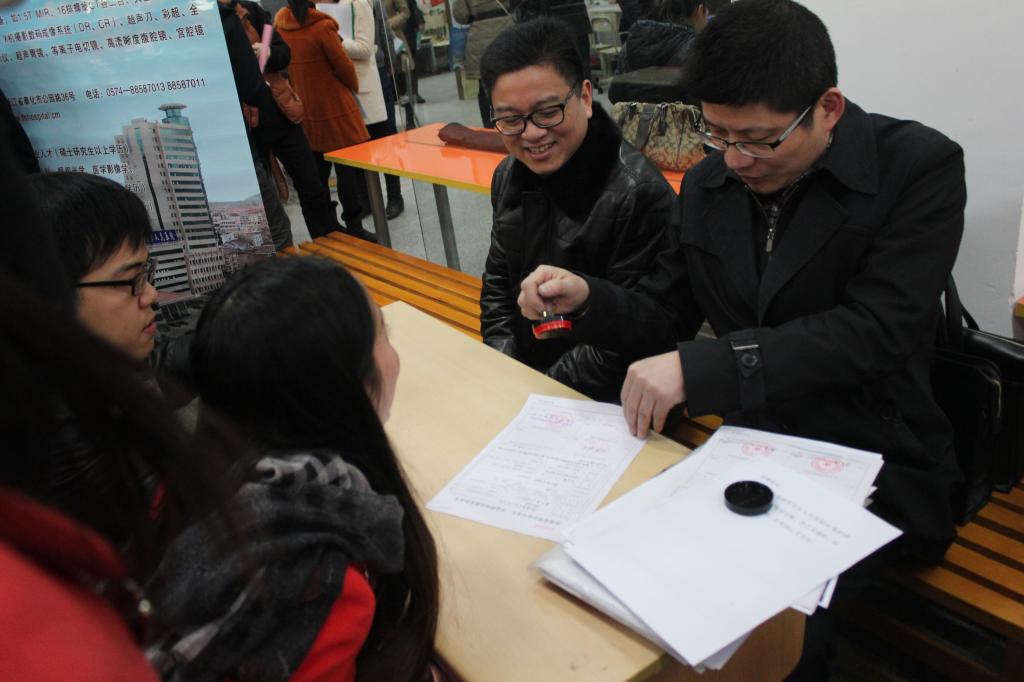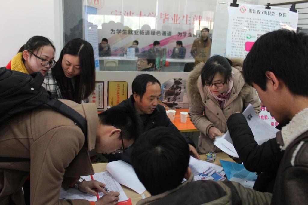 1月8日,医国产av自拍2015届毕业生专场招聘会在黄庆苗楼一楼大厅举行。本次招聘会吸引了来自海曙、江北、镇海、鄞州、北仑以及宁海、奉化、象山、三门、绍兴、杭州等地市的40余家用人单位前来参加。来自医疗卫生系统和保险等行业的单位,为我院毕业生提供了临床、影像、检验、放射、心电、麻醉、病理、预防等近500多个岗位,参会单位数量和岗位数量再次创下历年之最。医国产av自拍临床医学、预防医学本科毕业生,各专业硕士毕业研究生以及科技国产av自拍临床医学专业的本科毕业生近三百人前来咨询洽谈。