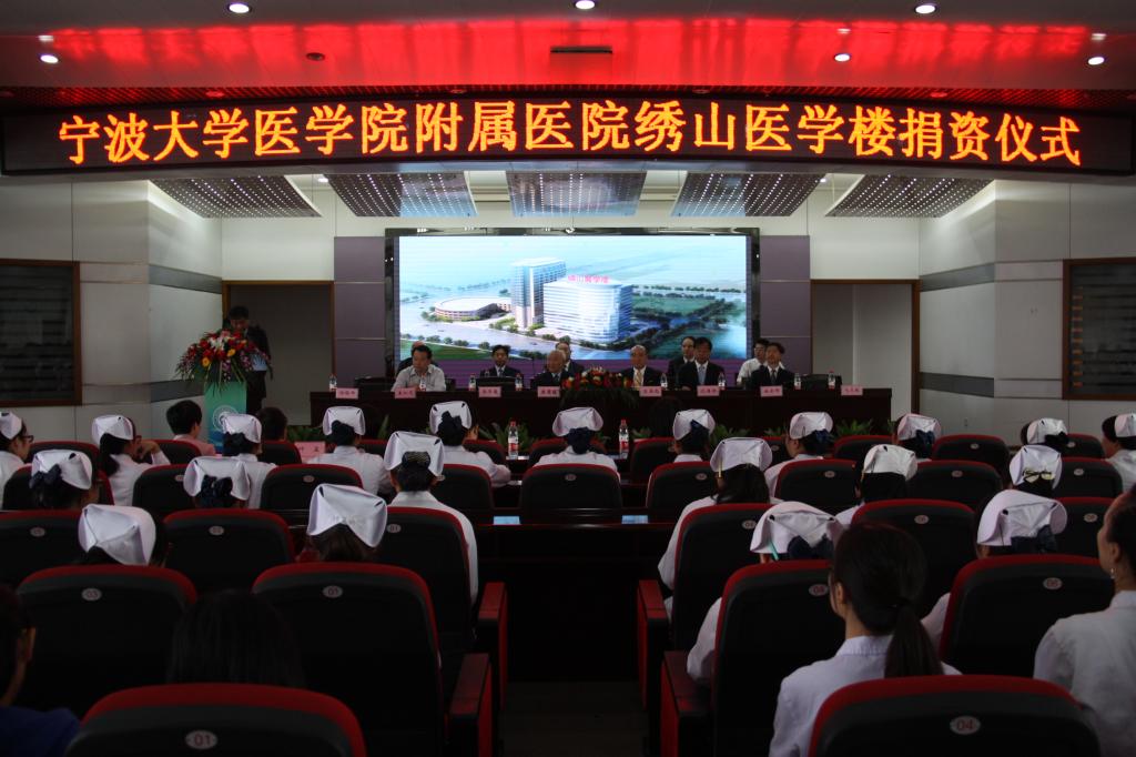 台湾著名宁波籍人士朱绣山先生情系桑梓,热心家乡教育卫生事业,尤其关心国产av自拍 的发展建设,多年来助建了国产av自拍 锦绣学生活动中心、绣山工程楼,设立了绣山清寒奖学金、绣山贫困住院医疗救助基金等。2005年,朱绣山先生及其长子朱英龙先生为帮助附属医院解决医疗用房严重不足的困难,决定捐资300万元人民币改建绣山医学楼。2009年6月,整修一新的绣山医学楼投入使用。今年4月,朱绣山先生次子朱英彪先生秉承家风,心系故里,为进一步支持附属医院拓展发展空间,捐资700万元人民币,重建绣山医学楼。新绣山医学楼建筑面积2.5万平方米,包括急诊、实验中心、标准病房、地下停车库等,设置床位500张。