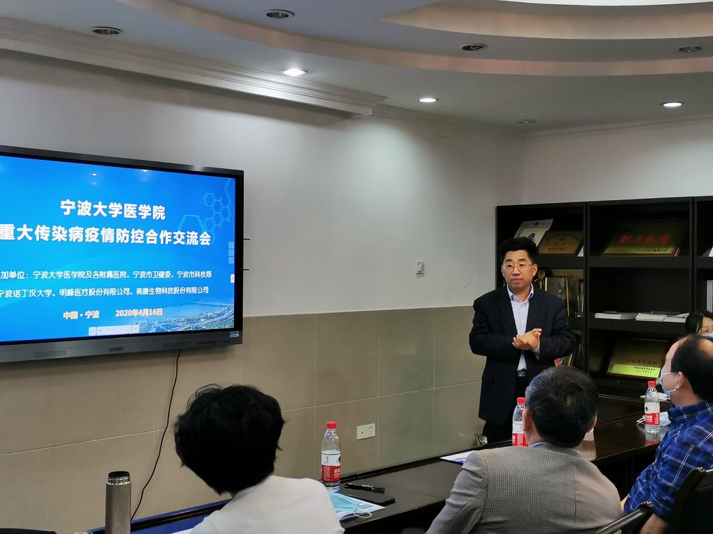 4月16日,医国产av自拍牵头组织了重大传染病疫情防控合作交流会。宁波市卫健委副主任、宁波市疾控中心主任许国章教授,市科技局社发处夏可宏处长等出席会议并讲话。医国产av自拍执行院长刘昱致欢迎辞。来自宁波诺丁汉大学、医国产av自拍各附属医院、相关企业领导和专家以及医国产av自拍师生代表共30余人参加了会议。会议围绕如何提升重大传染病疫情公共卫生治理体系和治理能力,如何产学研用融合抗击新冠肺炎疫情两个主题进行交流研讨。