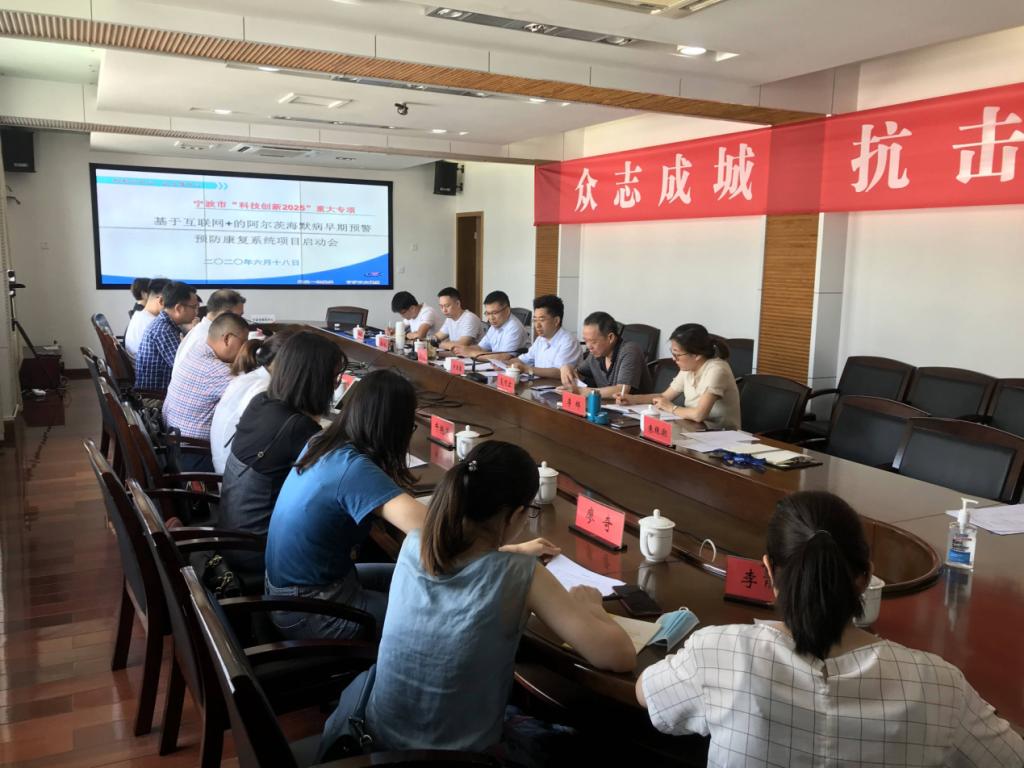 6月18日,宁大医国产av自拍“市科技创新2025”重大专项《基于互联网+的阿尔茨海默病早期预警预防康复系统》在宁波市疾病预防控制中心2号楼六楼会议室举行启动会,宁波市科技局夏可宏处长莅临指导,市卫健委副主任、疾控中心主任许国章致辞,市疾控中心、康宁医院、康复医院、国产av自拍 医国产av自拍附属医院、中科院宁波工业技术研究院慈溪生物医学工程研究所五家合作单位和医国产av自拍代表及项目参与者参加启动会。