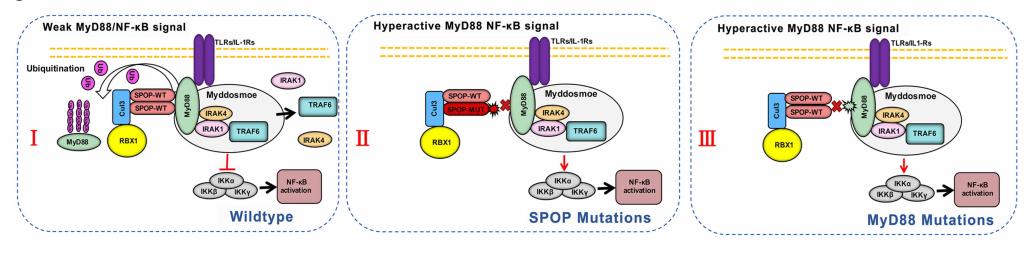 原文出处:Xiaofeng Jin,Qing shi,Qian Li.et al.CRL3-SPOP Ubiquitin Ligase Complex Suppresses the Growth of Diffuse Large B-cell Lymphoma by Negatively Regulating the MyD88/NF-κB Signaling. Leukemia